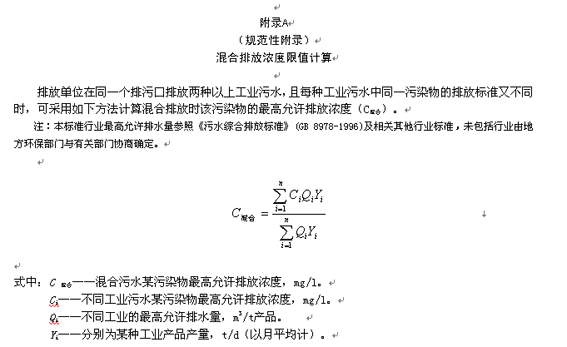 表2 第二類污染物最高允許排放濃度 單位為毫克每升(pH、糞大腸菌群除外) 序號 | 污 染 物 | 重點保護區域 | 一般保護區域 | 1 | pH | 6-9 | 6-9 | 2 | 色度(稀釋倍數) | 醫療機構 | 30 | 30 | 其他排污單位 | 40 | 50 | 3 | 懸浮物(SS) | 醫療機構 | 30 | 30 | 其他排污單位 | 50 | 70 | 4 | 五日生化需氧量(BOD5) | 20 | 20 | 5 | 化學需氧量(CODcr) | 石油化工工業(包括石油煉制)、醫療機構 | 60 | 60 | 啤酒工業 | 60 | 80 | 其他排污單位 | 60 | 100 | 6 | 石油類 | 3 | 5 | 7 | 動植物油 | 5 | 10 | 8 | 揮發酚 | 0.2 | 0.5 | 9 | 總氰化合物 | 0.2 | 0.5 | 10 | 硫化物 | 0.5 | 1.0 | 11 | 氨氮 | 10 | 15 | 12 | 氟化物 | 8 | 10 | 13 | 磷酸鹽(以P計) | 0.3 | 0.5 | 14 | 甲醛 | 0.5 | 1.0 | 15 | 苯胺類 | 0.5 | 1.0 | 16 | 硝基苯類 | 1.0 | 2.0 | 17 | 陰離子表面活性劑(LAS) | 3.0 | 5.0 | 18 | 總銅 | 0.5 | 0.5 | 19 | 總鋅 | 2.0 | 2.0 | 20 | 總錳 | 1.0 | 2.0 | 21 | 彩色顯影劑 | 1.0 | 1.0 | 22 | 顯影劑及氧化物總量 | 3.0 | 3.0 |