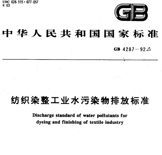 紡織染整工業(yè)水污染物排放標(biāo)準(zhǔn)(GB 4287-92)