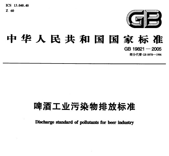 啤酒工業污染物排放標準(GB 19821—2005 )
