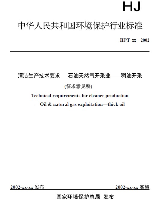 下載地址:《清潔生產(chǎn)技術(shù)要求 石油天然氣開(kāi)采業(yè)-稠油開(kāi)采》(征求意見(jiàn)稿).pdf