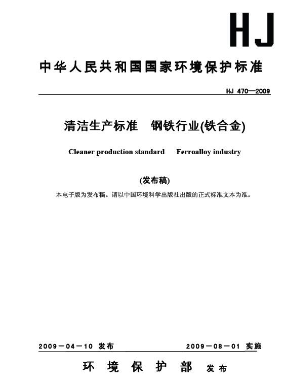 下載地址:1HJ 470-2009 清潔生產(chǎn)標(biāo)準(zhǔn) 鋼鐵行業(yè)(鐵合金).pdf