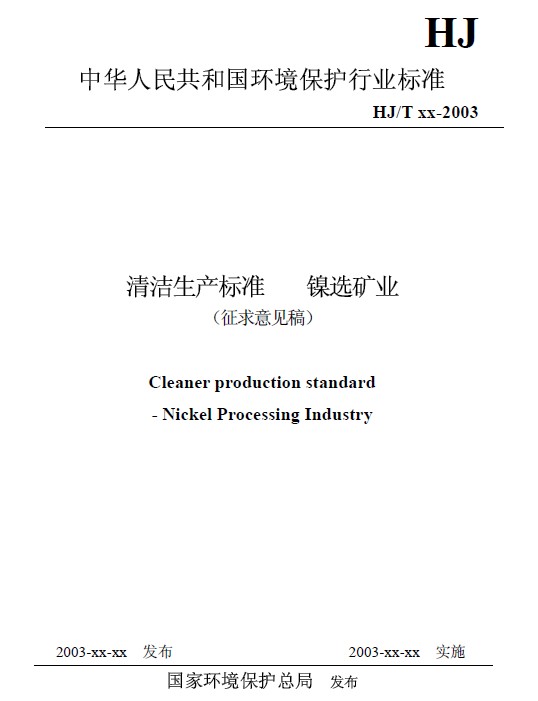 《清潔生產(chǎn)標(biāo)準(zhǔn) 鎳選礦業(yè)》(征求意見(jiàn)稿)