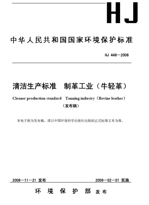 清潔生產(chǎn)標(biāo)準(zhǔn) 制革工業(yè)(牛輕革)