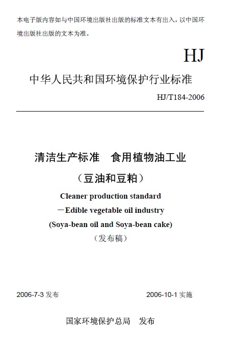 清潔生產標準食用植物油工業(豆油和豆粕)(發布稿)