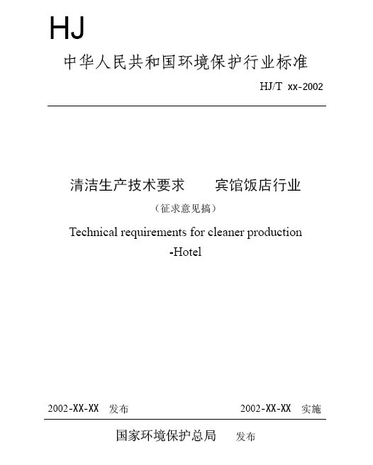 《清潔生產(chǎn)技術(shù)要求 賓館飯店行業(yè)》(征求意見搞)