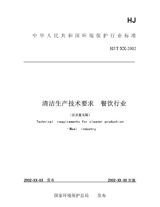 《清潔生產(chǎn)技術(shù)要求 餐飲行業(yè)》(征求意見稿).pdf