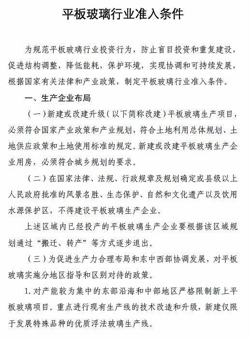 《平板玻璃行業(yè)準(zhǔn)入條件》